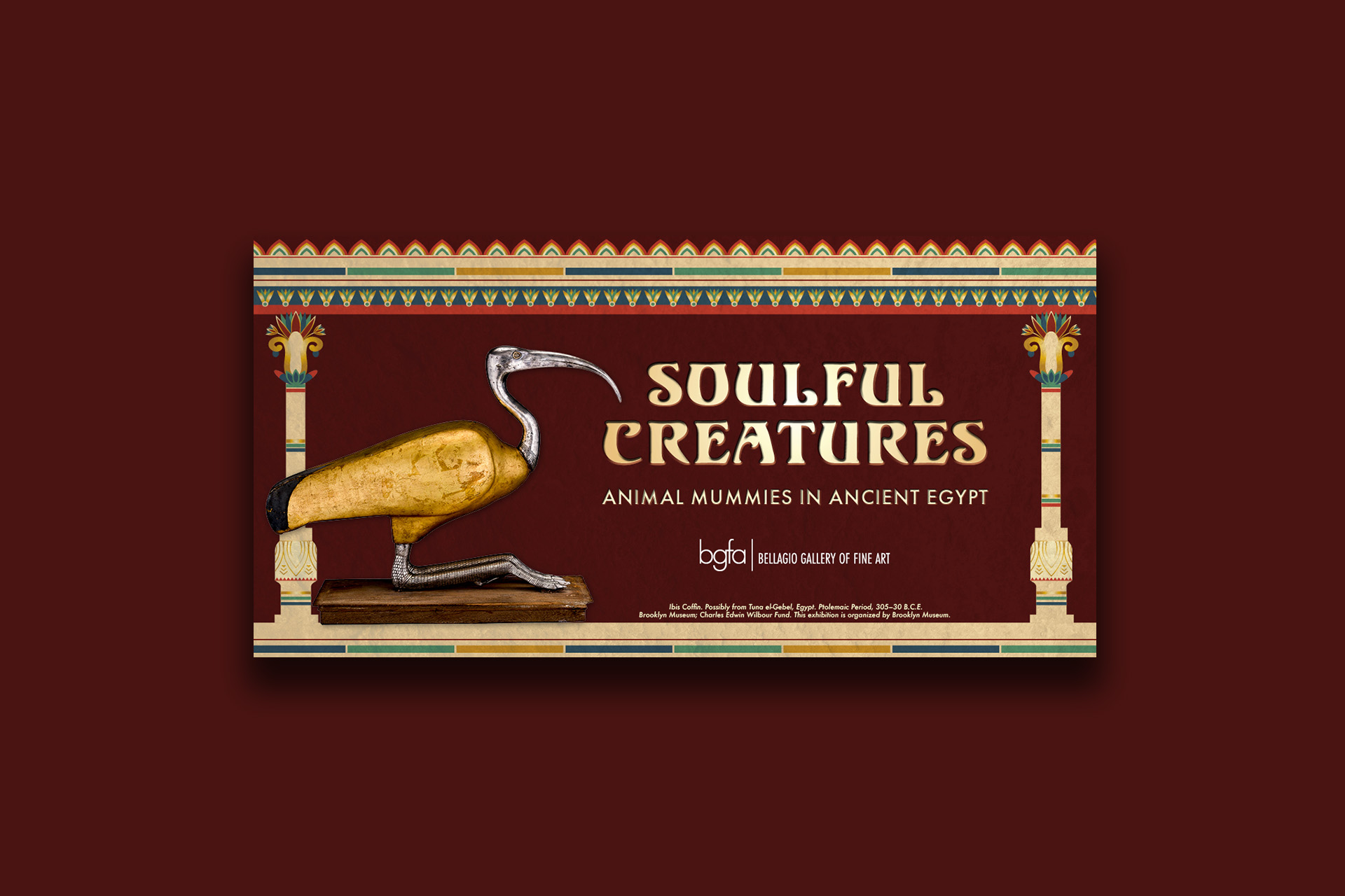 Step into the enigmatic world of Ancient Egypt with Soulful Creatures: Animal Mummies in Ancient Egypt, the newest exhibition at Bellagio Gallery of Fine Art, presented in partnership with the Brooklyn Museum. Sparked by the rediscovery of uncatalogued boxes containing 30 animal mummies, this exhibition unveils a rarely seen and deeply intriguing aspect of Egyptian ritual culture.