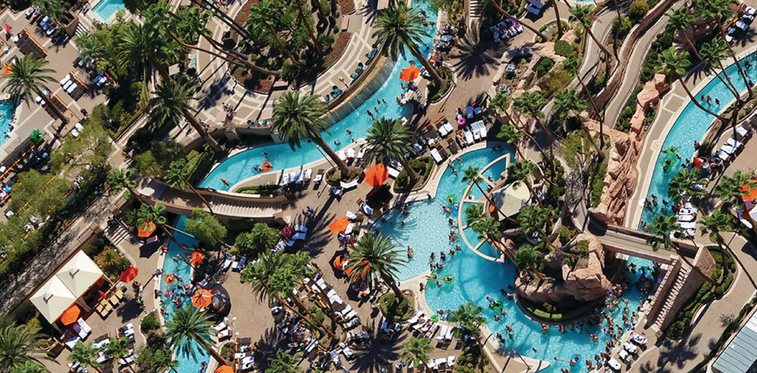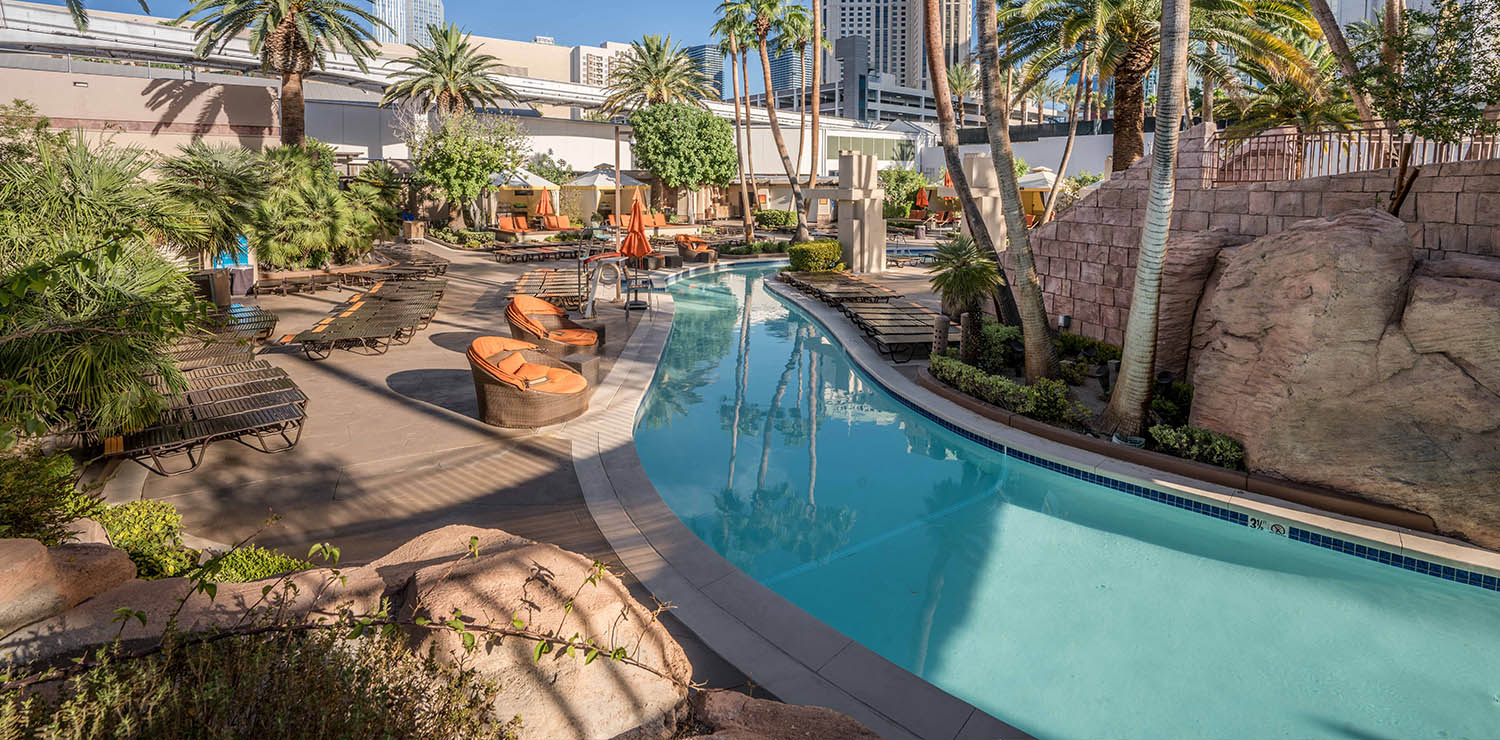 Massages and pampering treatments can be arranged in the Grand Spa, which also includes a fitness center, saunas, whirlpools, and relaxation lounge. Beauty services are available at the upscale Grand Salon. The Grand Pool complex includes five outdoor pools, three whirlpools, a lazy river, lush gardens, waterfalls, and private cabanas plus Palm Tree Beach Club where guests can enjoy a pool party atmosphere while listening to celebrity DJ beats. Other amenities include Topgolf, several luxury shops, tour assistance and a stop on the Las Vegas Monorail.