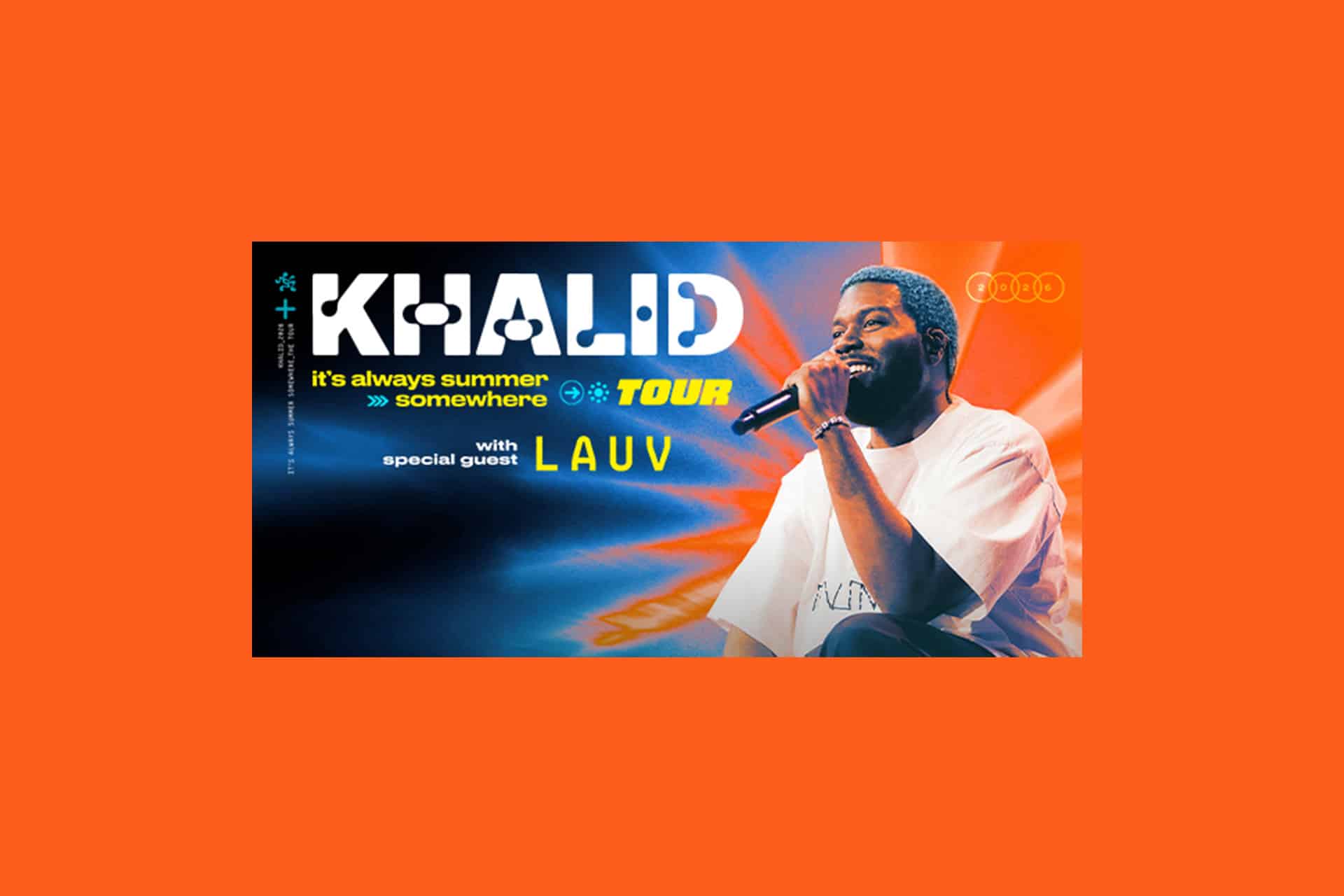 The Multi-Platinum Global Superstar returns to the road with a 25-date North American Run with support from special guest Lauv. The tour celebrates Khalid’s evolution since emerging as one of music’s most relatable young voices. Since breaking through with his 2017 debut album American Teen featuring the global hits “Location” and “Young Dumb & Broke,” Khalid has become one of contemporary music’s most authentic artists. His catalog includes the chart-topping album Free Spirit, the Suncity EP, Sincere, after the sun goes down, and a celebrated roster of collaborations with Marshmello (“Silence”), Billie Eilish (“lovely”), Halsey (“Eastside”), and Normani (“Love Lies”).